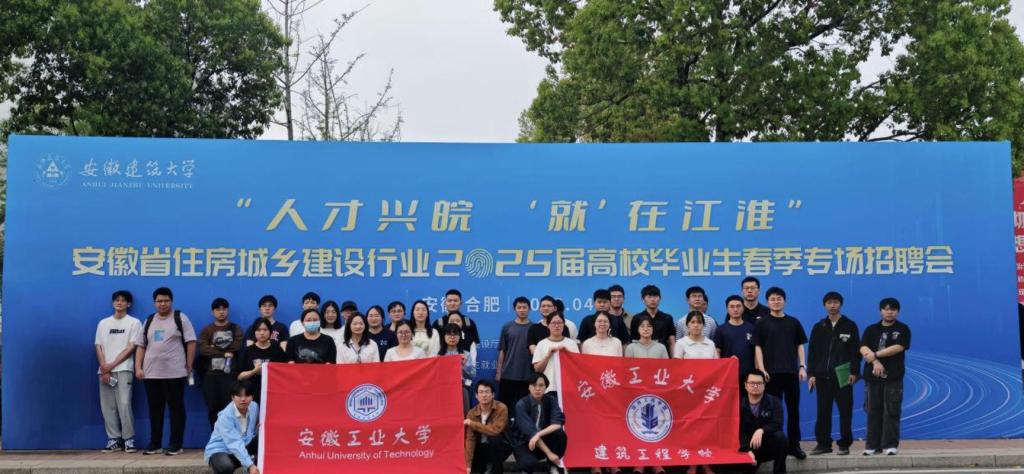 毕业班辅导员朱珉琨带领55名应届毕业生前往安徽建筑大学,参加由安徽省住房和城乡建设厅、安徽省教育厅、安徽省人力资源和社会保障厅联合主办的“安徽省住房城乡建设行业2025届高校毕业生春季专场招聘会”。本次招聘会汇聚200余家建筑行业知名企业,涵盖建筑设计、施工管理、工程咨询、市政规划、智能建造等多个领域,为毕业生提供了丰富的就业岗位和实习机会。