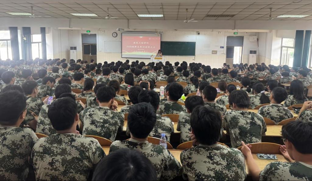 2025级新生军训动员大会在东教一阶101教室隆重举行。学院党委副书记、副院长王颖之出席大会,2025级新生辅导员崔余龙、黄雨晴主持会议,全体2025级新生身着迷彩服以昂扬姿态参会。