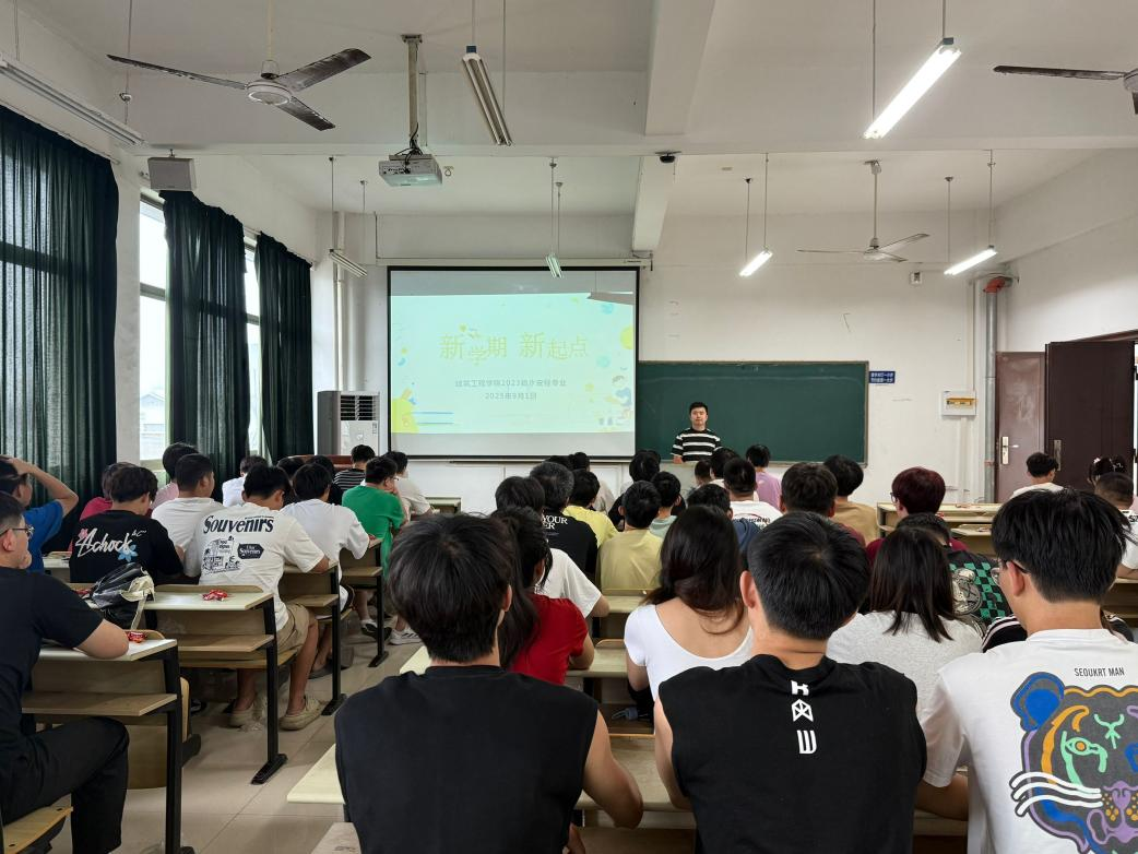 2023级在建北503召开新学期年级会,本次会议由2023级辅导员张腾飞主讲,2023级学生参加。