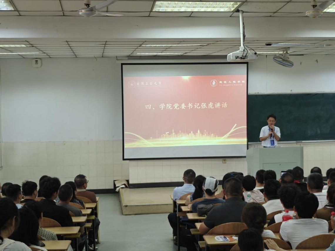 紧接着,学院党委书记张虎作总结讲话。他代表学院对2025级新生及家长的到来表示热烈欢迎,并围绕“家校共育、立德树人”这一主题,强调了家庭教育与学校教育的协同重要性。张虎书记表示,学院将不断优化管理服务,加强学风建设,为学生成长成才提供坚实保障,同时也希望家长持续关注学生的身心发展,与学校保持密切沟通,共同助力学生全面发展。最后,全体与会人员共同奏放院歌。在激昂的旋律中,家长会圆满落下帷幕。会后,许多家长仍同班主任和辅导员进行咨询交流,现场气氛热烈。
