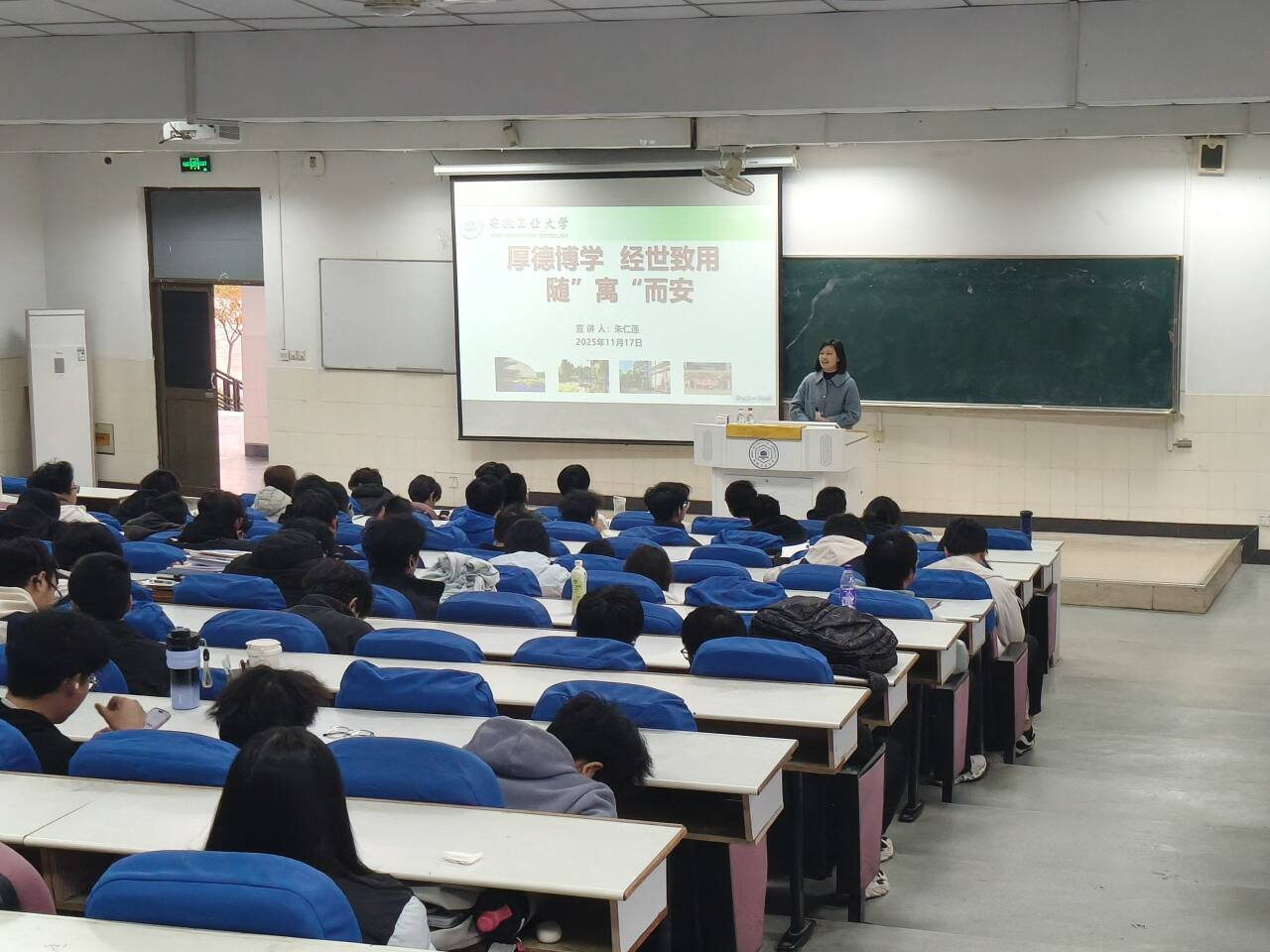 于秀山校区阶梯102组织召开2025级新生宿舍安全卫生交流会。校后勤处宿管老师,院2025级辅导员及全体新生参会。