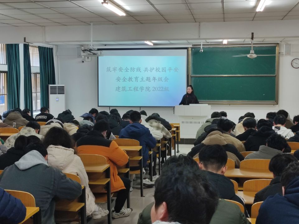 在秀山校区东教北楼组织召开2022级毕业班寒假离校安全教育专题会议。会议由毕业班辅导员金晶、陈奎主持,围绕离校期间及寒假生活中的各类安全事项展开讲解,旨在提升学生安全意识,确保学生平安离校、度过充实假期。