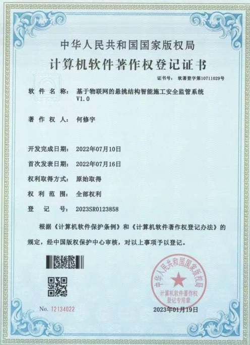 经过三年的不断努力,何修宇最终在学习、科研方面取得一定成绩。作为项目负责人主持一项国家级大创项目,作为第一发明人申请发明专利两项(其中一项已进入实审),授权实用新型专利一项,授权软件著作权一项。2022年,他参加江苏省研究生“土木工程碳中和”暑期学校并获得优秀学员称号。