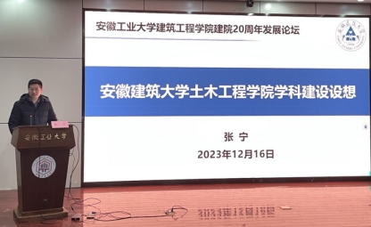 国家高层次青年人才、安徽建筑大学土木工程学院执行院长张宁教授作了题为《安徽建筑大学土木工程学院学科建设设想》的报告,主要介绍了安徽建筑大学土木工程学院发展历程、学科发展现状以及从专业建设转向学科建设的未来发展思路与设想。