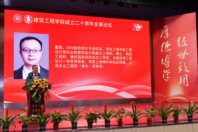 党委书记蔡保兴、上海市政工程设计研究总院副总工程师董磊分别作为用人单位代表、兄弟高校代表、教师代表、校友代表,表达了对52书库
