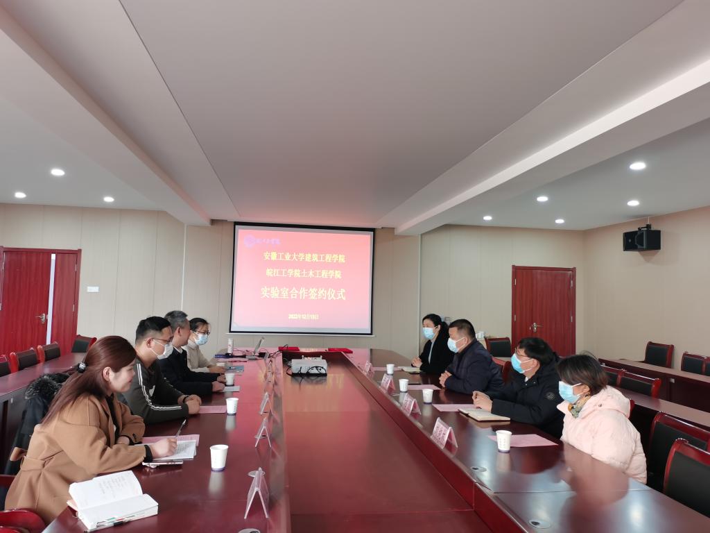 于峰一行的到来表示热烈欢迎,并介绍了土木工程学院的基本情况;双方就安全工程专业的实验教学签订了合作协议,并就人才引进、本科教学、学科建设等方面进行了深入交流;最后,于峰一行参观了土木学院的实验室建设情况。皖江工学院教务部副部长黄翠、教务部实践科科长杨扬、土木工程学院实验中心主任丁东升、安全工程教研室主任李平等参加此次会议。