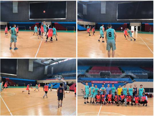 教工男子篮球队与土木工程专业留学生男子篮球队在秀山校区体育馆展开一场精彩的毕业季中外师生篮球友谊赛。